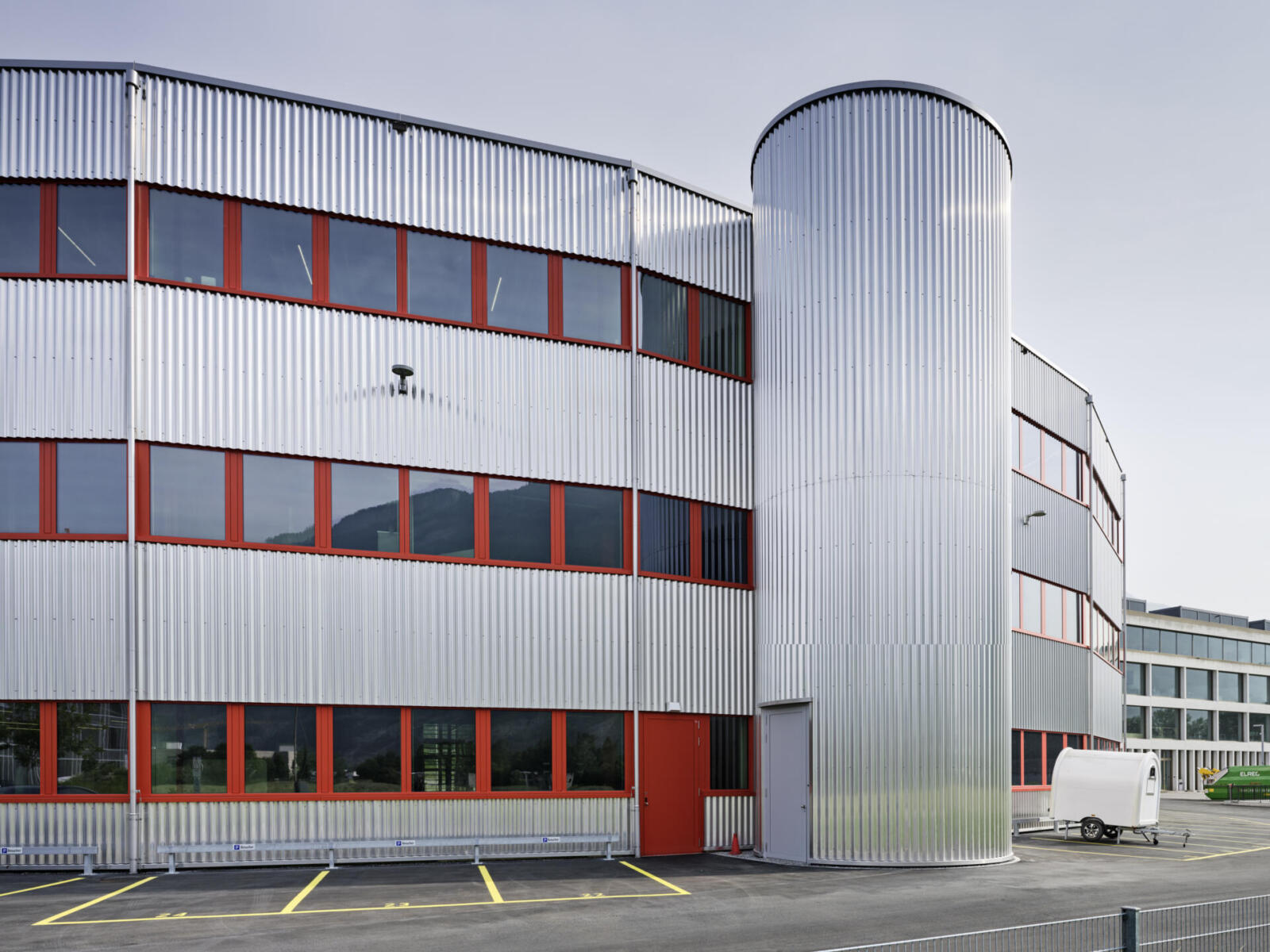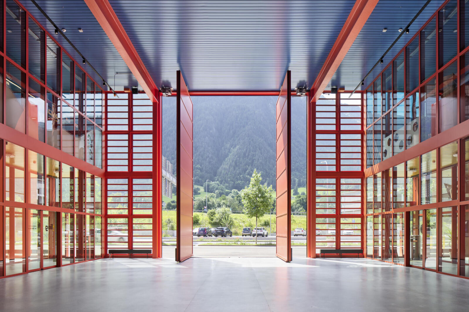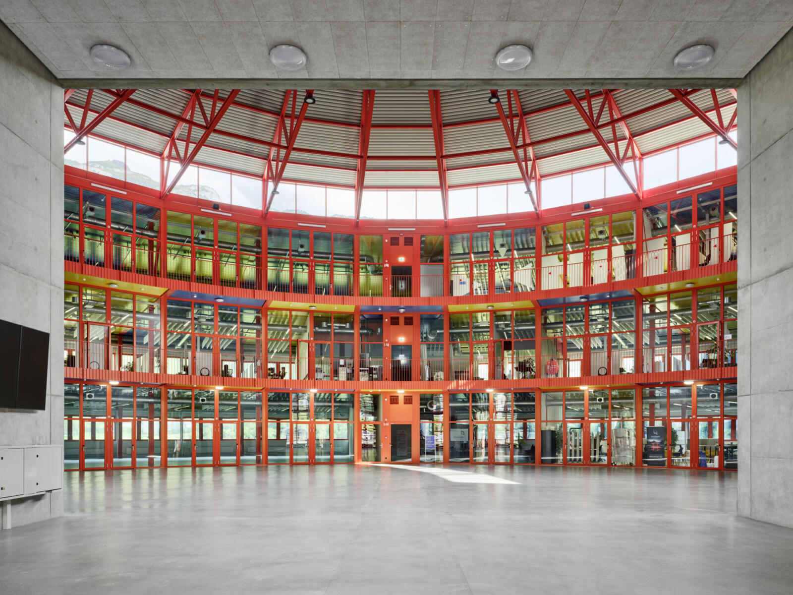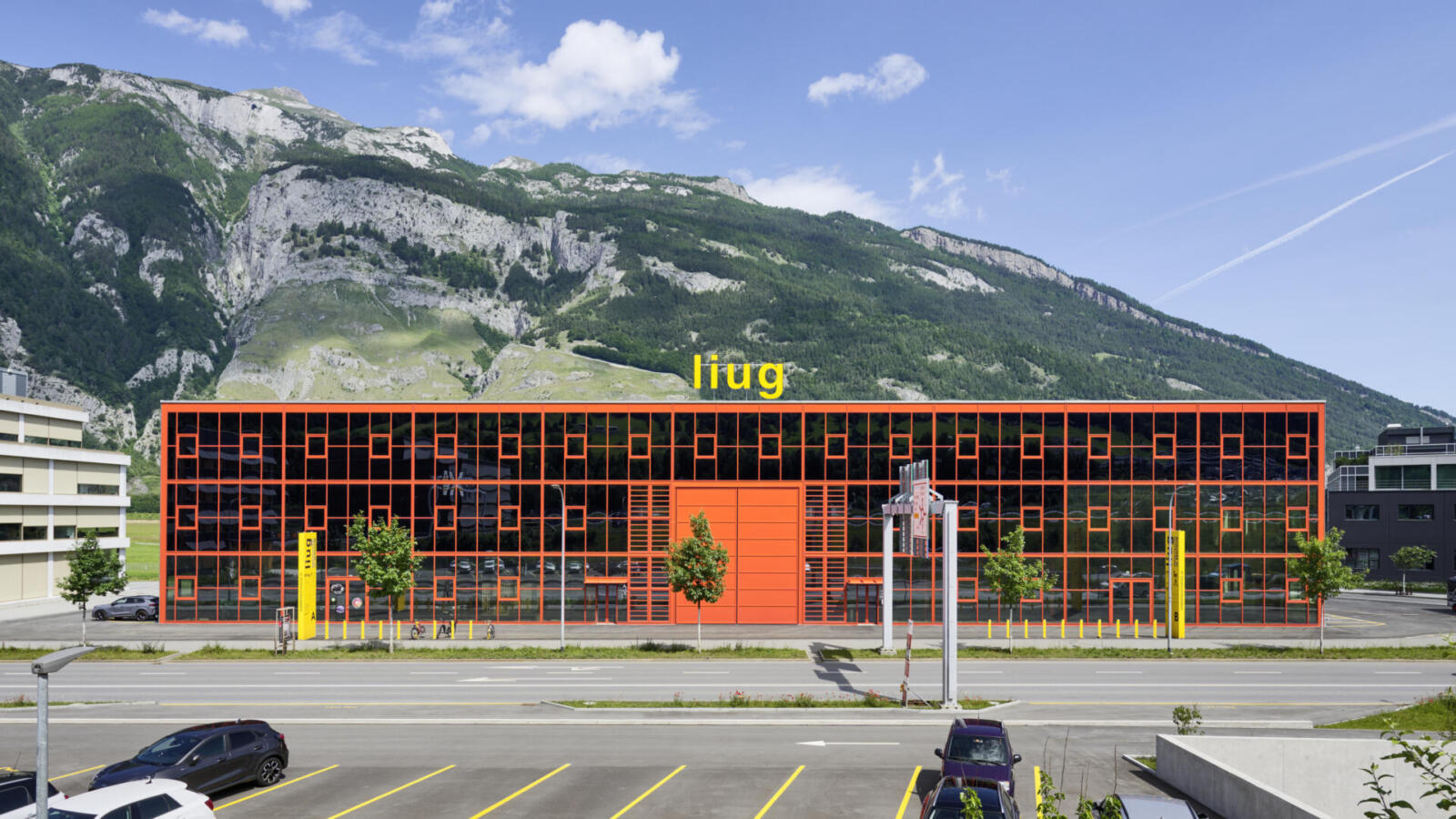 Die Besonderheit des Innovationszentrums LIUG (rätoromanisch: Ort) äussert sich durch speziell offene und hohe Räume für Forschungseinrichtungen und -aktivitäten auf drei Geschossen, vor allem aber in der Disposition des Gebäude als Halbrundtheater mit Galerien, zentraler Halle und grosszügigen Bühnen- und Vorbühnenräumen. Nebst der Möglichkeit, Einblicke in die diversen Tätigkeiten auf den Geschossen zu erhalten, können umgekehrt Veranstaltungen (Ausstellungen, Messen, Events etc.) in der gemeinsamen Halle stattfinden. Die Mehrfarbigkeit von Stahlstruktur und Deckenspiegeln unterstützt die Idee als Ort von Ereignissen.
