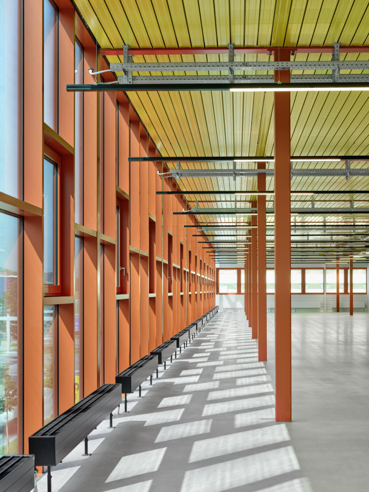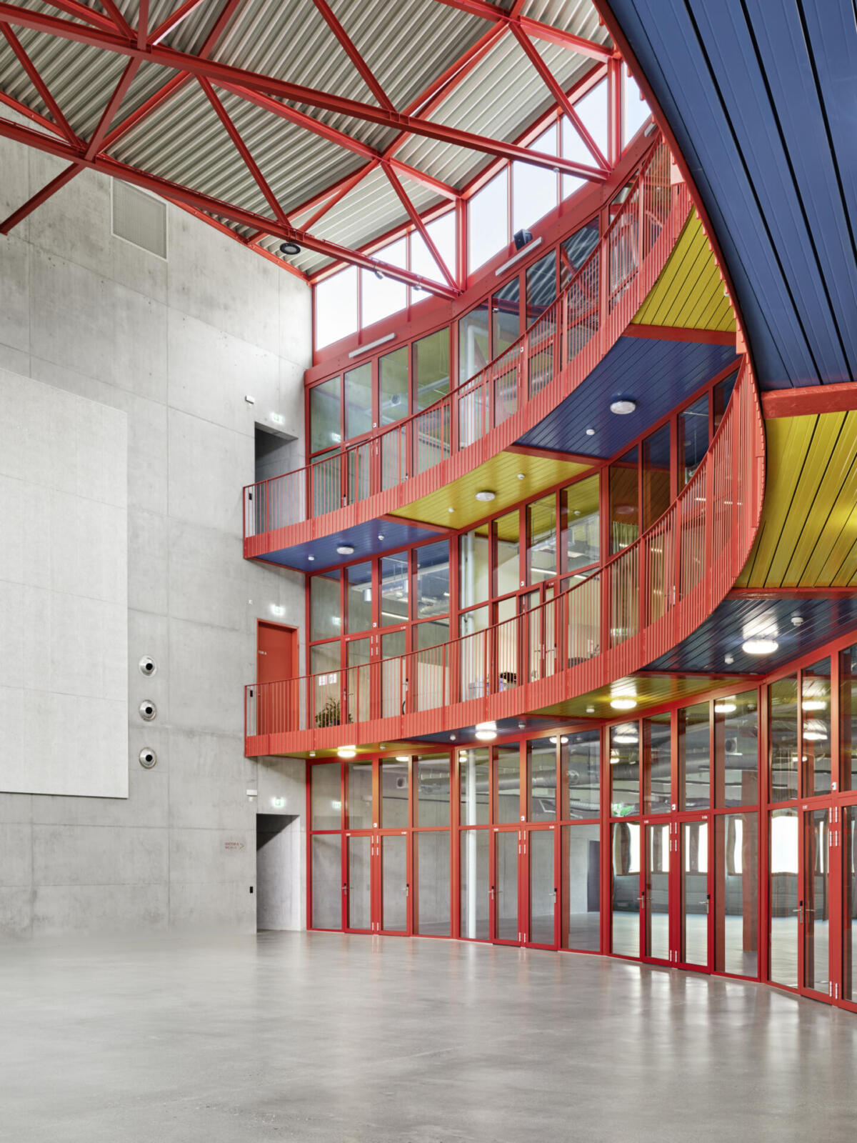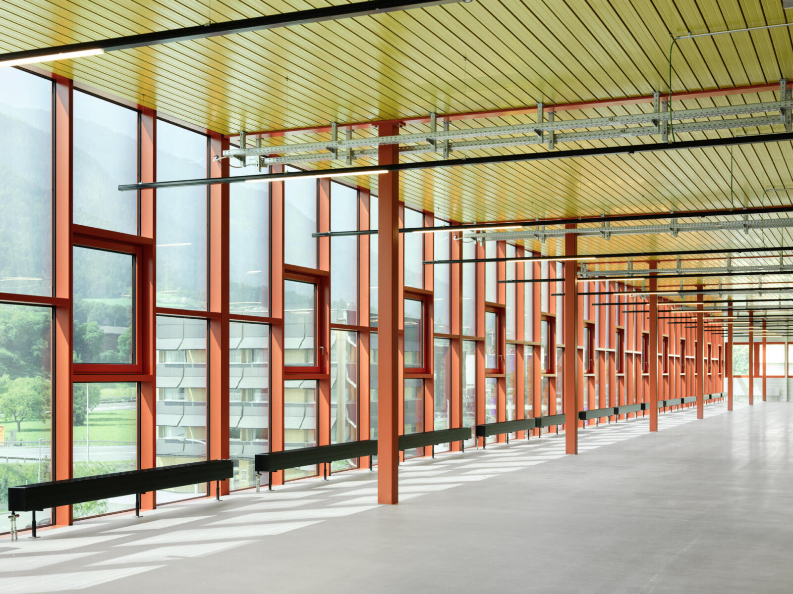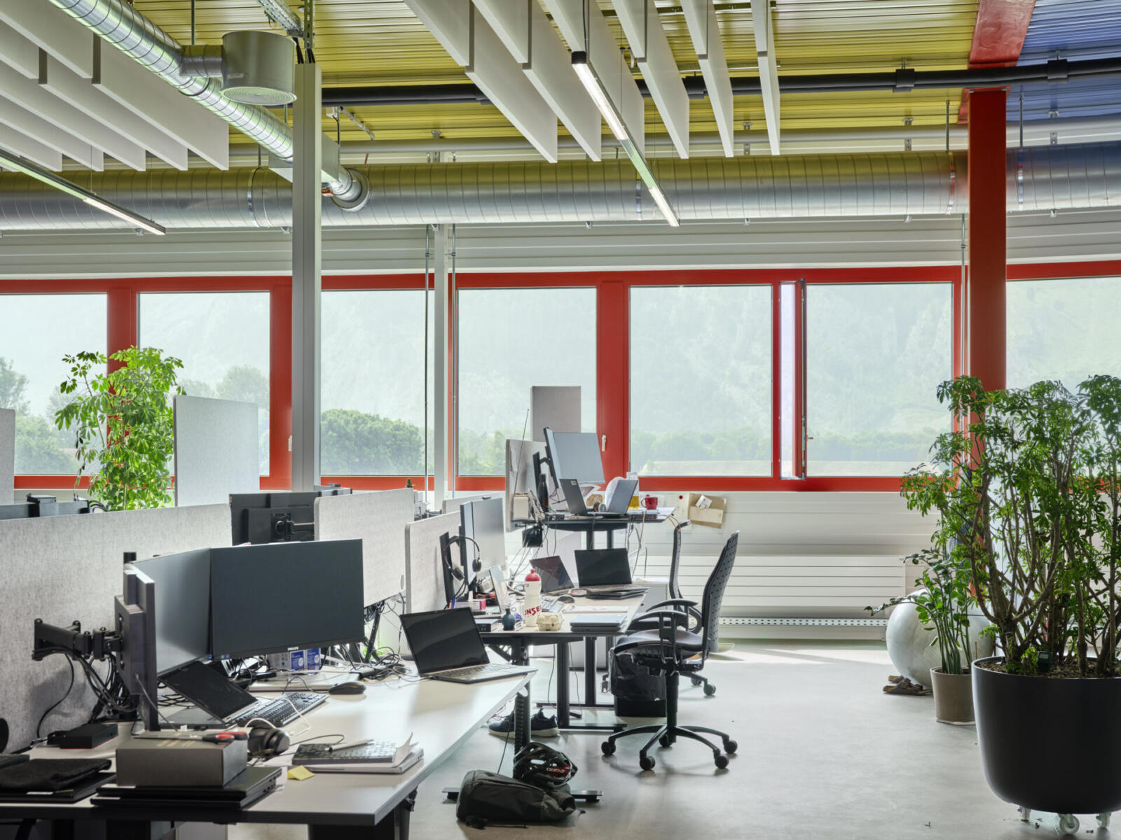 Die Besonderheit des Innovationszentrums LIUG (rätoromanisch: Ort) äussert sich durch speziell offene und hohe Räume für Forschungseinrichtungen und -aktivitäten auf drei Geschossen, vor allem aber in der Disposition des Gebäude als Halbrundtheater mit Galerien, zentraler Halle und grosszügigen Bühnen- und Vorbühnenräumen. Nebst der Möglichkeit, Einblicke in die diversen Tätigkeiten auf den Geschossen zu erhalten, können umgekehrt Veranstaltungen (Ausstellungen, Messen, Events etc.) in der gemeinsamen Halle stattfinden. Die Mehrfarbigkeit von Stahlstruktur und Deckenspiegeln unterstützt die Idee als Ort von Ereignissen.